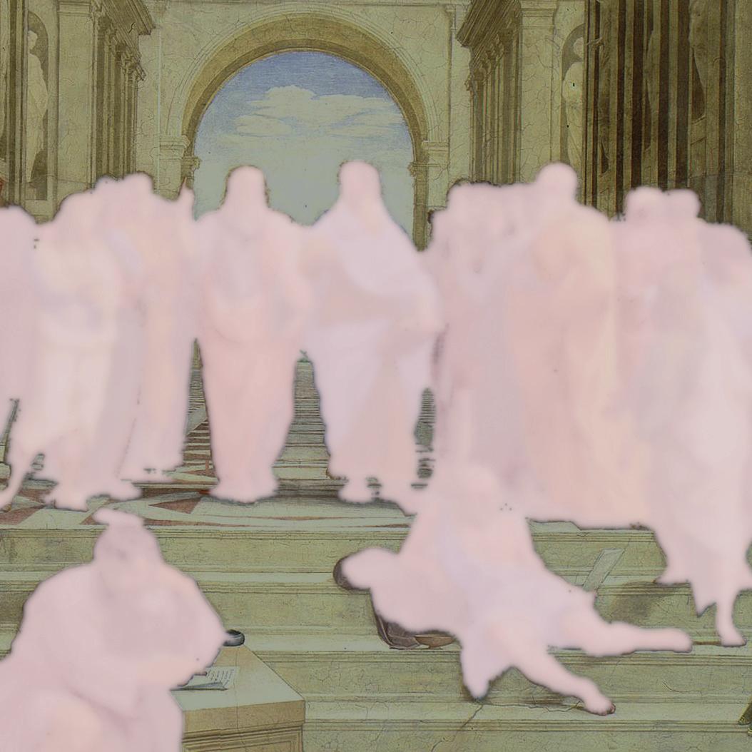 Aber auch in die andere Richtung vermag man man nicht sehr weit vorzudringen. Das Spiel mit den komplizierten Werkzeugen – hier z.B. sgn. /semantic segmentation/ – bleibt rudimentär und unbeholfen. Sehr viel vermag man damit in den Bildern noch nicht zu erkennen und herauszuheben. Es reicht aber zumindest, um die Kategorie “Person” bzw. “Mensch” maschinell zu identifizieren und zum Verschwinden zu bringen – sie nur mehr als klaffende Lücke und Leerstelle erscheinen zu lassen.